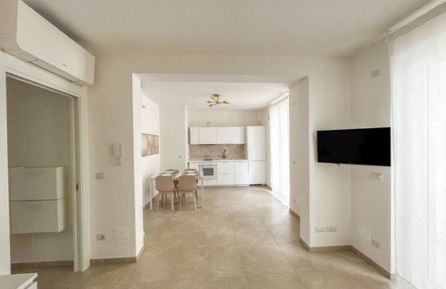 From the indipendent entrance with a patio equipped for speding time outdoor, you can enter to the openspace kitchen with all the essential equipment, dishwasher, oven, induction plate, fridge and freezer. In the living room there is also a comfortable doble sofa bed.