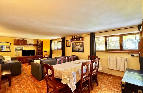 Nestled in the picturesque town of Galapagar, this charming apartment in a cozy cottage offers the perfect retreat for families seeking a relaxing vacation. With direct access to a shared swimming pool, you can enjoy sunny days by the water, while the beautiful natural surroundings provide a serene atmosphere for unwinding. The apartment is conveniently located near a variety of attractions. Explore the charming village of Galapagar, or take a short drive to nearby Madrid, just 30 minutes away, where you can discover rich history, culture, and shopping. Outdoor enthusiasts can also enjoy hiking, cycling, and nature walks in the nearby Sierra de Guadarrama National Park. The apartment features a welcoming entrance that leads to a well-equipped kitchen, which is also accessible from the outside for easy entry after a day at the pool. The open-plan living and dining room offer a comfortable space to relax and enjoy meals together. The apartment includes a cozy bedroom, a bathroom, and a heating facility to ensure comfort year-round. For added relaxation, indulge in the indoor bubble bath and sauna, available for a small additional fee. The shared garden is perfect for outdoor relaxation, complete with doors and furniture where you can enjoy the peaceful environment.