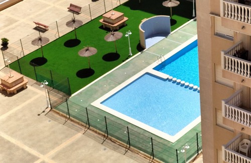It has a large balcony with tables and chairs to enjoy outdoor meals protected from the sun and with privileged views over the Mar Menor.; It also has a common terrace/solarium on the Ninth Floor with 360-degree views.