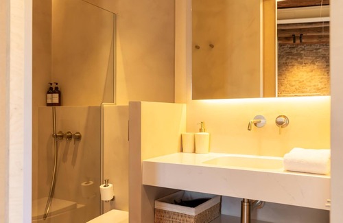 This studio has elements of the original structure, such as ceilings with exposed beams and brick walls. The studio has a double bed and a private bathroom. Includes a sofa, TV and kitchenette with fridge, coffee maker and kettle.
